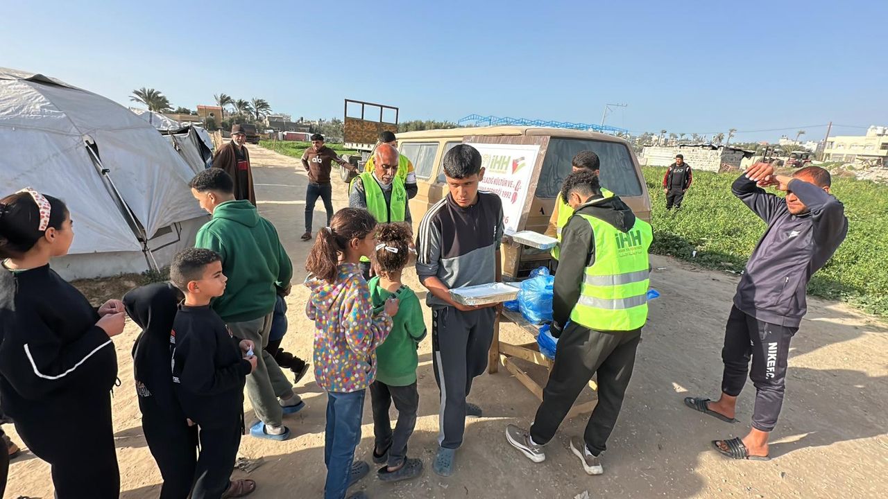 Gazze’de Ramazan ayının başlamasıyla birlikte insani yardım faaliyetleri hız kazandı. İstanbul Elazığ Kültür ve Yardımlaşma Derneği tarafından başlatılan iftar çalışması çerçevesinde, bölgede zor şartlar altında yaşamını sürdüren sivillere yönelik yemek dağıtımına başlandı. Organizasyon kapsamında hazırlanan yemekler ihtiyaç sahiplerine ulaştırılarak Ramazan ayının paylaşma ve dayanışma ruhunun sahada somut bir destekle yansıtılması amaçlanıyor.