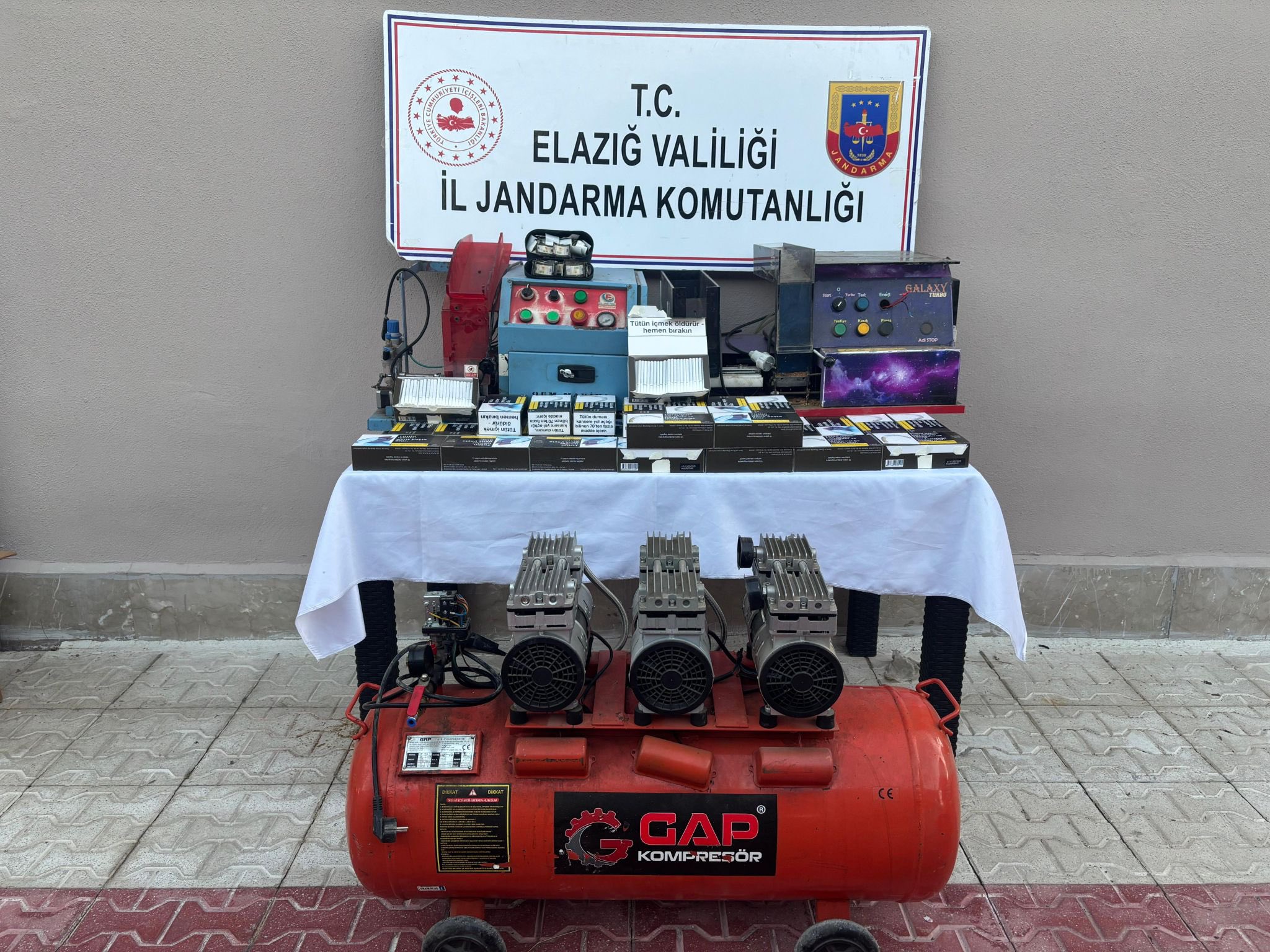 Öte yandan, Şahinkaya Mahallesi’nde eski bir evde yasa dışı yollarla sigara üretimi yapıldığı tespit edildi. Belirlenen adreste ve şüpheliye ait araçta yapılan aramalarda 2 tütün dolum makinesi, 1 hava kompresörü, 6 bin 200 dal doldurulmuş makaron ve 199 adet bandrol ele geçirildi.