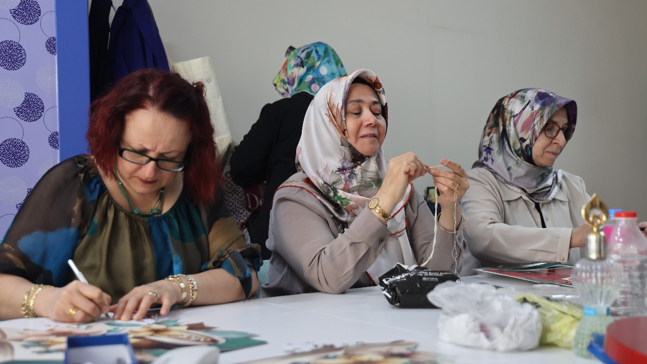 Halk Eğitim Merkezi’nde El Sanatları usta öğreticisi Meltem Sezer, "Burada hanımlara yönelik el sanatları kursu veriyoruz. Kurs mevcudumuz 25 kişiye kadar çıkabiliyor. Hanımlar açısından hem psikolojik bir terapi hem de sosyal faaliyet gerçekleştiriyoruz. Burada yaptığımız ürünleri ev ekonomisine katkıda bulunmak için satıyoruz. Sabah saat 09.00’da başlıyor 15.30’a kadar kursumuz devam ediyor. Hafta içi her gün kursumuz açıktır. Hanımlar burada, 3 boyutlu kağıt rölyef, boncuk işi, tel kırma ve çantalar yapıyor. Her sene yeni kursiyerlerimizle devam ediyoruz. Hayat boyu öğrenme şenliği kapsamında yıl sonu sergimiz oluyor. Orada yaptığımız çalışmalarımızı sergiliyoruz. Satmak isteyen hanımlar da yaptığı ürünleri satarak ev ekonomisine katkıda bulunmaya çalışıyor. Satış konusunda biraz sıkıntılarımız var. Sosyal medya üzerinden satmaya çalışıyoruz fakat bu çok yeterli olmuyor" dedi.
