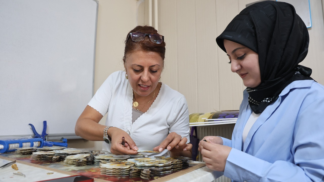 Elazığ Halk Eğitim Merkezi Müdürlüğü, yıl içerisinde açtığı binlerce kursta yüzbinlerce insana eğitim veriyor. Tüm talepleri değerlendiren ve mahalle mahalle kurslar açan Halk Eğitim Merkezi, özellikle kadınların yanında olmaya devam ediyor. Bu çerçevede açılan El Sanatları Kursu, yoğun ilgi görüyor. Kursa katılan kadınlar bir yandan sosyalleşirken bir yandan da el işi öğreniyor. Tel kırma, örgü, epoksi olmak üzere birçok ürün yapan kursiyerler, aynı zamanda bunları satarak aile ekonomilerine katkı da sağlıyor.