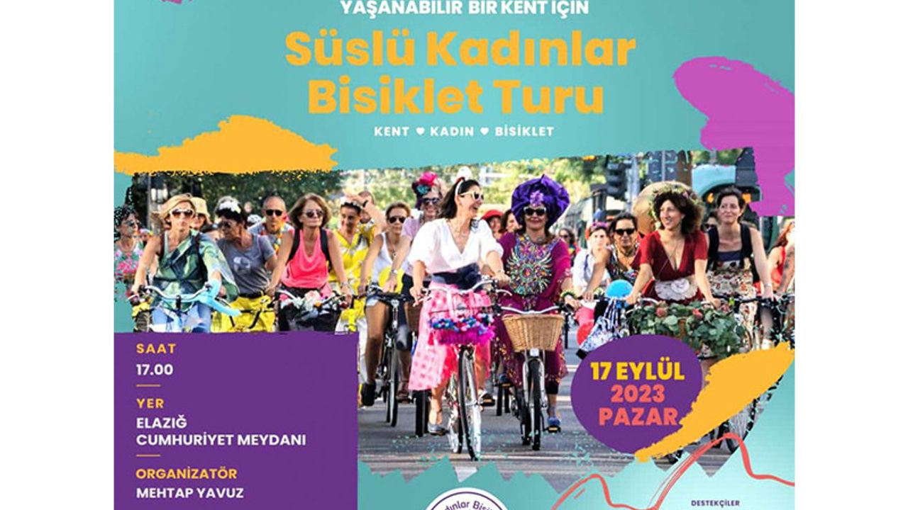 Kadınların toplumda daha fazla görünürlüğünü sağlamak, kendilerini temsil etmelerine fırsat vermek ve güvenli bisiklet sürmeye ilişkin altyapı talebini pekiştirmek için düzenlenen Süslü Kadınlar Bisiklet Turu, 17 Eylül Pazar Günü Elazığ Cumhuriyet Meydanında yapılacak. İlk olarak 2013 yılında İzmir’de Dünya Otomobilsiz Kentler Günü kapsamında bisikletin günlük hayatın bir parçası olmasına dikkat çekmek amacıyla düzenlenen Süslü Kadınlar Bisiklet Turu, bu yıl birçok şehirde ve ülkede eş zamanlı olarak yine gönüllü kadınlar tarafından yapılacak.