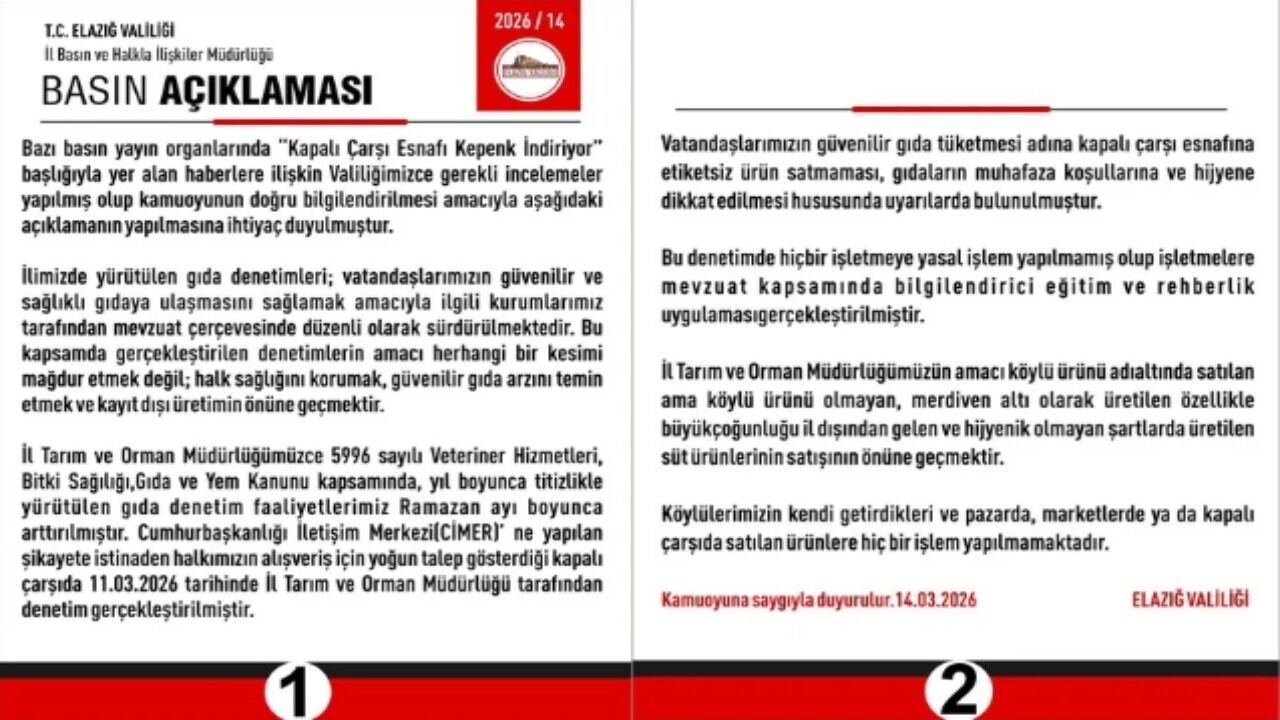 Açıklamada, İl Tarım ve Orman Müdürlüğü tarafından 5996 sayılı Veteriner Hizmetleri, Bitki Sağlığı, Gıda ve Yem Kanunu kapsamında yıl boyunca titizlikle yürütülen gıda denetimlerinin Ramazan ayı dolayısıyla artırıldığı kaydedildi. Bu kapsamda, Cumhurbaşkanlığı İletişim Merkezi’ne (CİMER) yapılan bir şikâyet üzerine halkın yoğun olarak alışveriş yaptığı Kapalı Çarşı’da 11 Mart 2026 tarihinde denetim gerçekleştirildiği bildirildi.