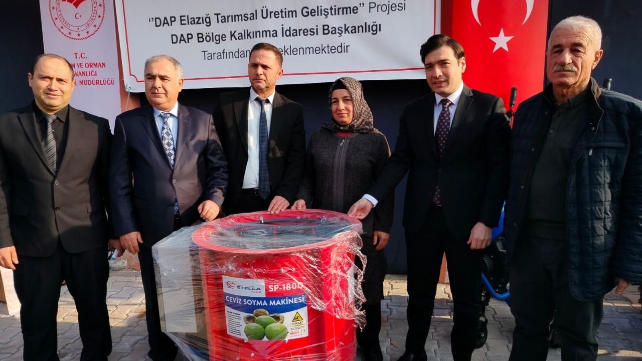 Keban ilçesinde gerçekleştirilen programda, proje kapsamında belirlenen hak sahibi üreticilere toplam 110 adet çapa makinesi, 60 adet badem silkeleme makinesi ve 60 adet ceviz soyma makinesi teslim edildi. Dağıtımı yapılan tarımsal ekipmanların, özellikle küçük ve parçalı arazilerde üretim yapan çiftçilerin işlerini kolaylaştırması ve üretim verimliliğini artırması hedefleniyor.