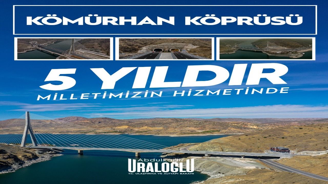Ulaştırma ve Altyapı Bakanı Abdulkadir Uraloğlu, Fırat Nehri üzerinde inşa edilen Kömürhan Köprüsü’nün hizmete alınmasının üzerinden 5 yıl geçtiğini belirterek yapının bölge ulaşımı açısından stratejik önem taşıdığını açıkladı. Bakan Uraloğlu, köprünün hizmet süresi boyunca güvenli ve kesintisiz ulaşım sağladığını vurguladı.