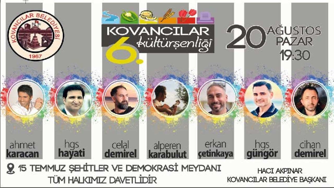 Kovancılar Belediyesi tarafından düzenlenen kültür şenliğinin 6’ıncısı 20 Ağustos Pazar günü başlayacak.