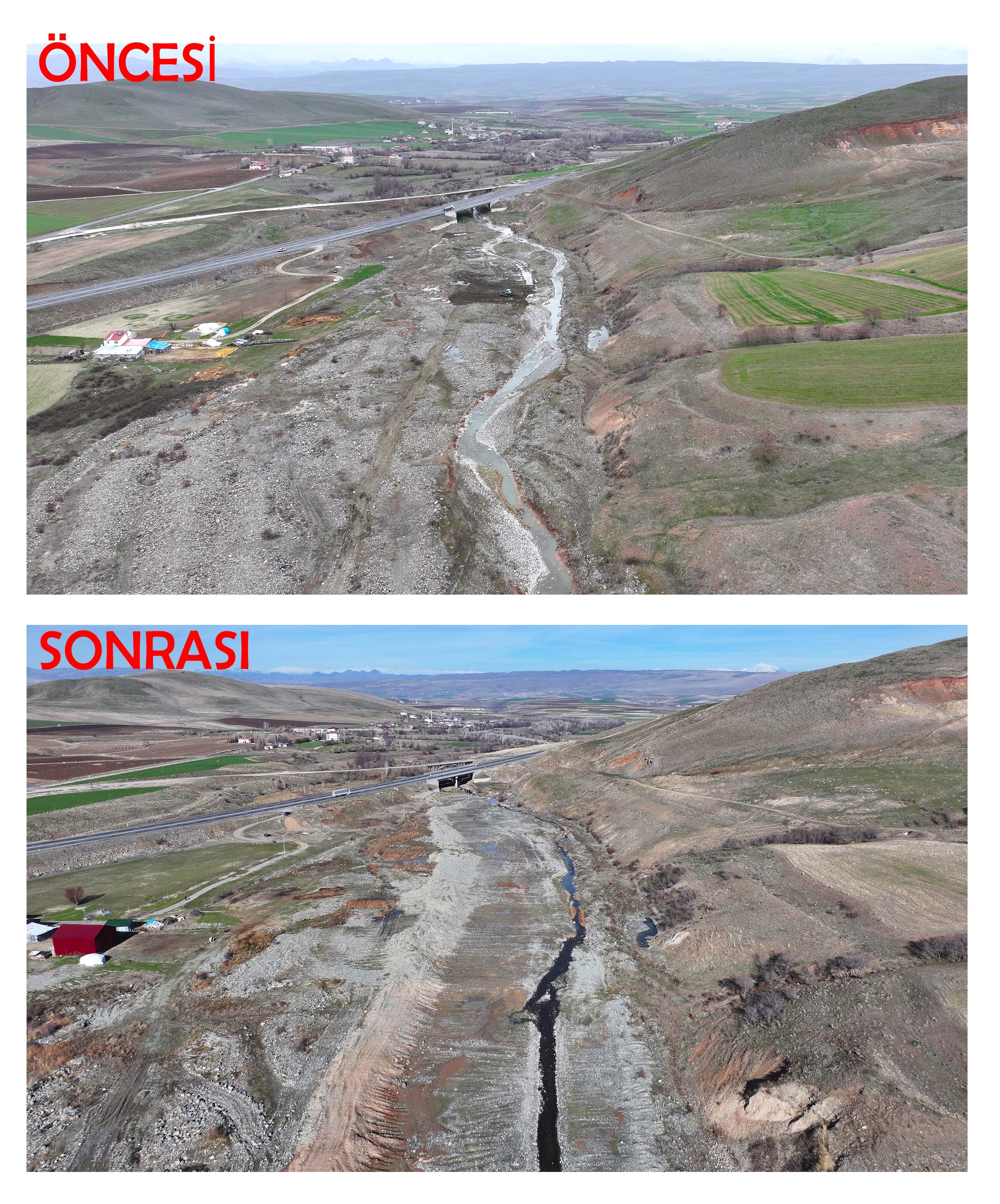 Bölgedeki tarım alanlarının ve yerleşim bölgelerinin korunmasına yönelik planlama doğrultusunda yürütülen çalışmalarda, dere yatağında biriken rüsubat ve atıklar iş makineleri yardımıyla temizlendi. Aynı zamanda yatak genişletme ve akış düzenleme işlemleri yapılarak suyun kontrollü şekilde tahliyesi sağlandı.