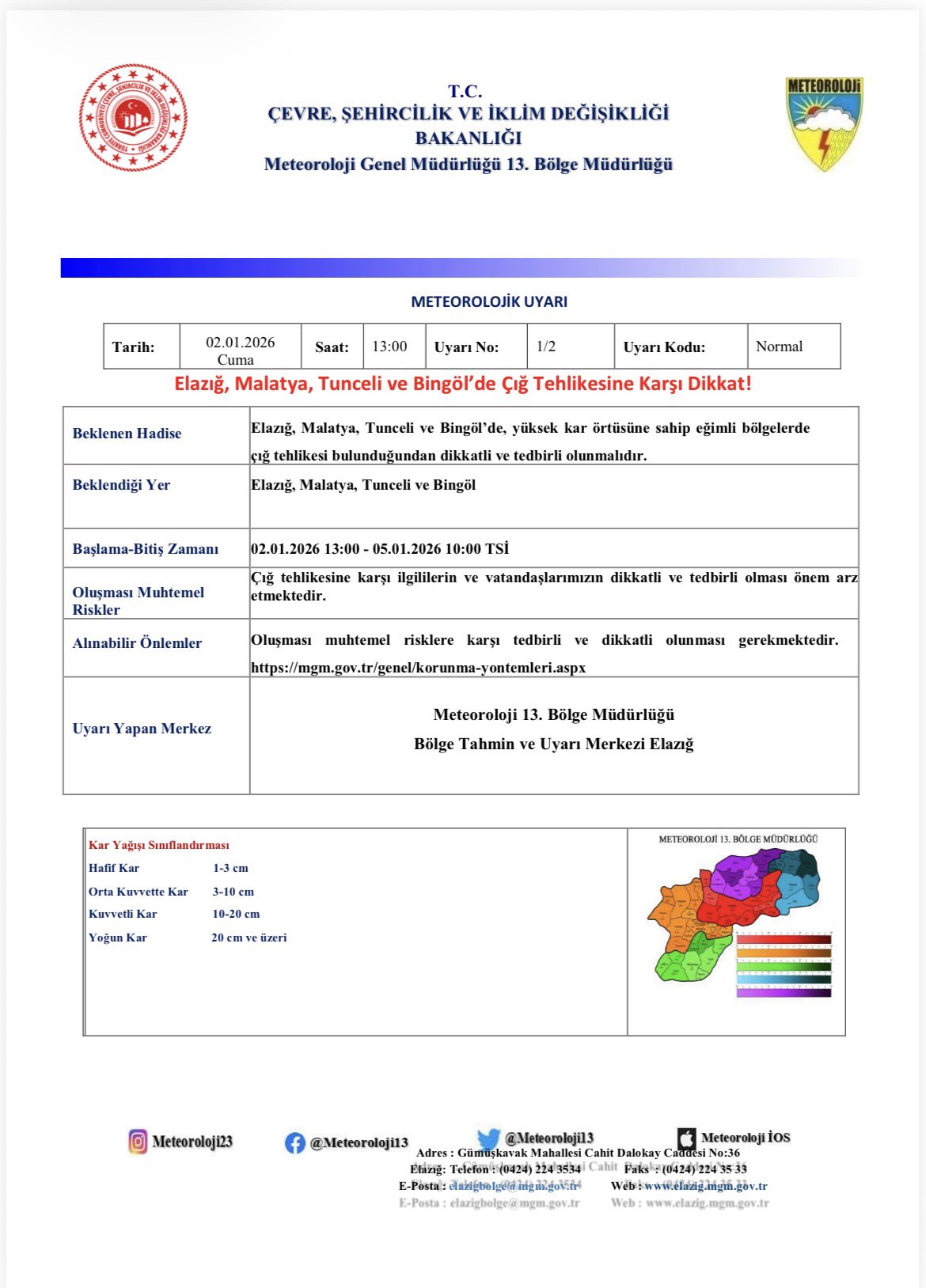 Can ve mal güvenliğinin korunması amacıyla riskli bölgelerden uzak durulması gerektiği ifade edilirken, özellikle ulaşımda yaşanabilecek aksamalar ve benzeri olumsuzluklara karşı yerel yönetimlerin ve bölge halkının hazırlıklı olması istendi.