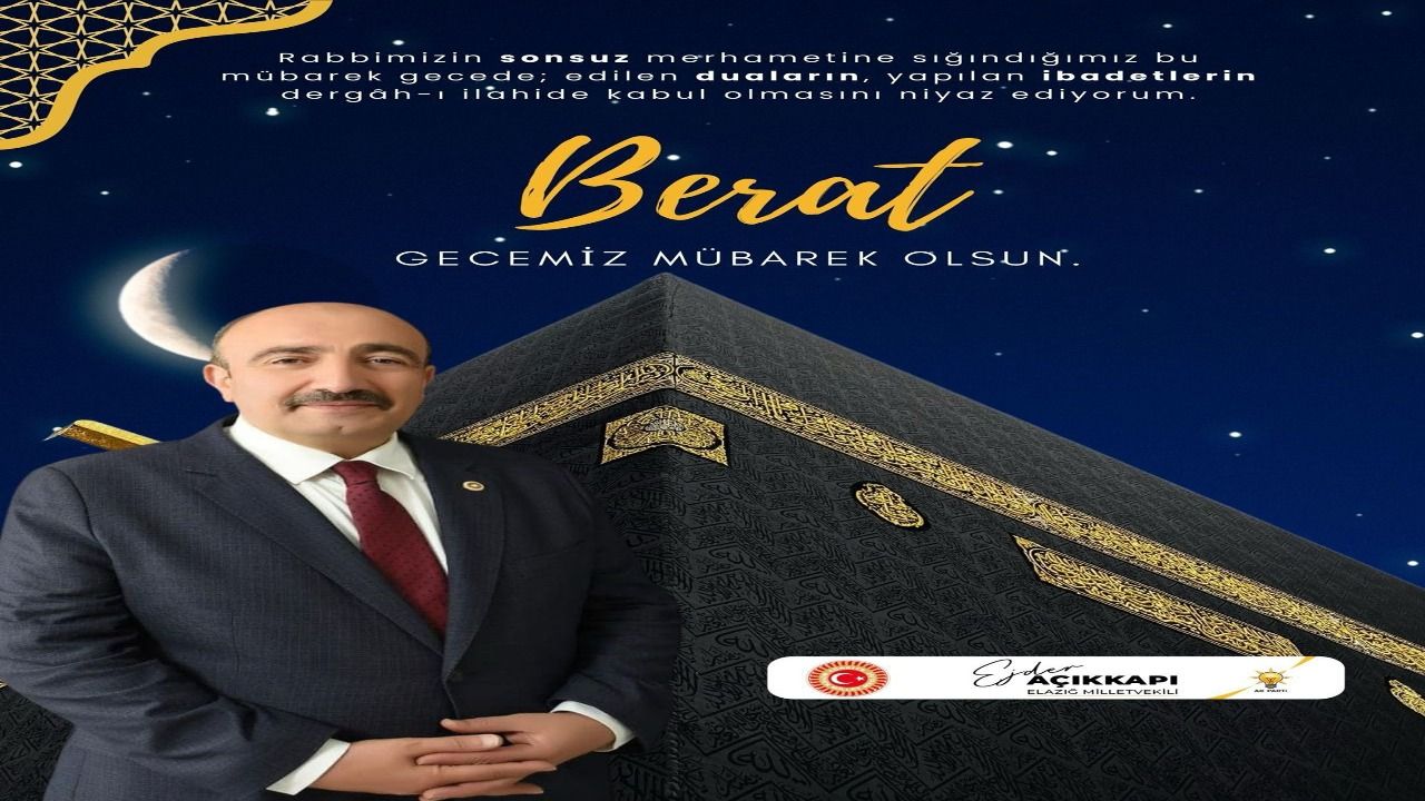 Ejder Açıkkapı, bu vesileyle Elazığlı hemşehrilerinin ve tüm İslam âleminin Berat Gecesi’ni tebrik ederek, gecenin hayırlara vesile olması temennisini paylaştı.