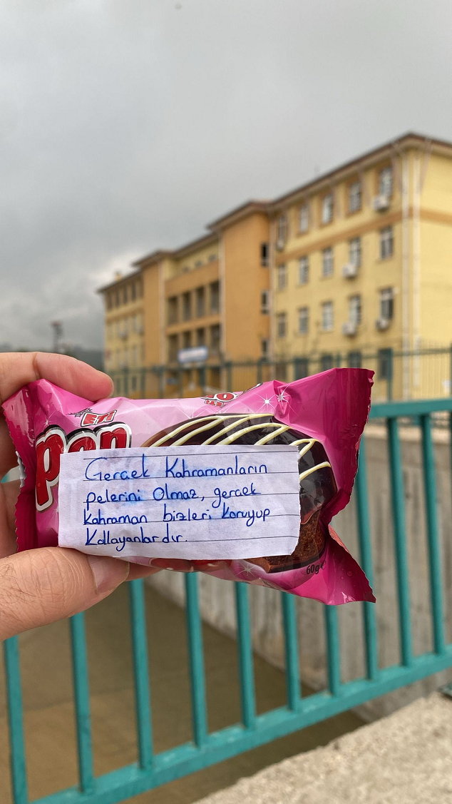 Öğrencinin kraker paketine iliştirdiği notta, “Türk kahramanlarına silah değil, ikram uzatılır. Bazı kahramanlar pelerinsizdir” ifadeleri yer aldı. Bu içten mesaj kısa sürede büyük yankı uyandırdı.