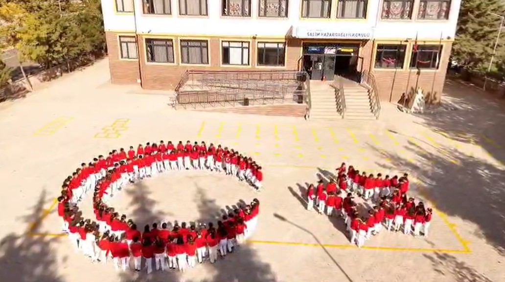 29 Ekim Cumhuriyet Bayramı’nın 102. yıl dönümü, Türkiye genelinde olduğu gibi Elazığ’da da çeşitli etkinliklerle kutlanıyor. Bu kapsamda Elazığ Salim Hazardağlı İlkokulu 3. ve 4. sınıf öğrencileri farklı bir çalışmaya imza attı. Öğretmenlerinin koordinesinde 120 öğrenci bir ay boyunca prova yaparak, ay-yıldız koreografisi sergiledi. Dron ile kaydedilen koreografi büyük beğeni toplarken, izleyenlerden tam not aldı.