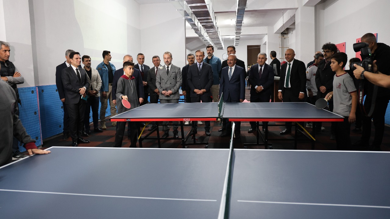 Elazığ’da İl Milli Eğitim Müdürlüğü’nce yürütülen "Atıl Alanlardan Aktif Yaşama" projesi kapsamında yapımı tamamlanan 15 okul spor salonu, düzenlenen törenlerle hizmete açıldı. Açılış programları Elazığ Aziz Gül Ortaokulu’nda gerçekleştirildi. Törene Elazığ Valisi Numan Hatipoğlu, İl Milli Eğitim Müdürü Beraat Şahin ve çok sayıda davetli katıldı. Kurdele kesiminin ardından salonları gezen yetkililer, öğrencilerin spor gösterilerini izledi. Bilek güreşi yapan öğrencilerin daveti üzerine Vali Hatipoğlu tebessüm ederek, "Karizmayı çizdirmeyelim," dedi. İl Milli Eğitim Müdürü Beraat Şahin ise 13 yaşındaki Yusuf Sevil ile bilek güreşi yaptı. Kısa sürede yenileceğini anlayınca gülerek, "Bırak, tamam" dedi. Bu anlar salondakileri kahkahaya boğdu.