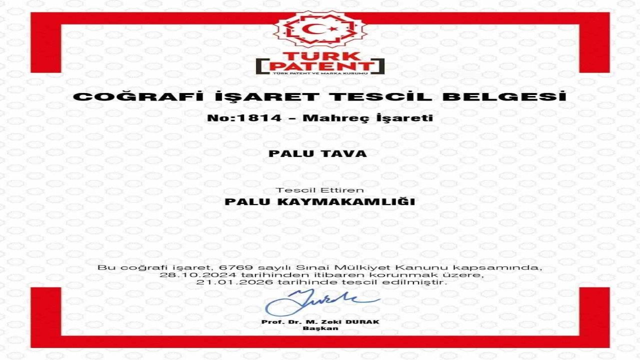 Elazığ'ın Palu ilçesinde ilçeye özgü lezzetlerden biri olan Palu Tava, Türk Patent ve Marka Kurumu tarafından coğrafi işaret tescil belgesi aldı. Tescil kararı, kaymakamlık girişimleri sonucu 21 Ocak 2026 tarihi itibarıyla resmen kabul edildi. Yukarı Fırat Bölgesi'nin önemli tatlarından biri olarak bilinen Palu Tava'nın coğrafi işaret almasıyla birlikte ilçe ve bölge gastronomisi ile turizmine önemli katkı sağlaması bekleniyor.