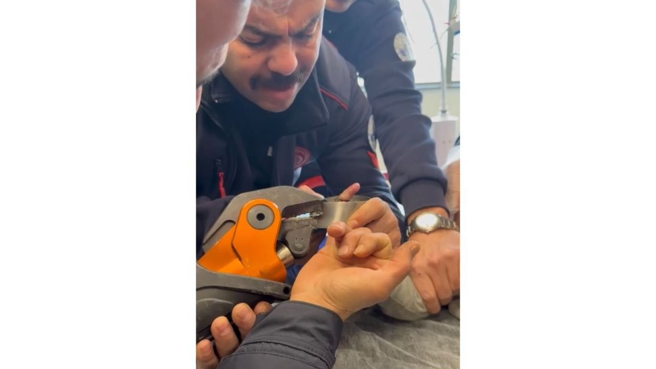 Edinilen bilgiye göre, 1 yaşındaki bebeğin parmağı çelik küllüğün deliğine sıkıştı. Bebeğin parmağını çıkartamayan aile, hastaneye götürdü. Doktor, İtfaiye Müdürlüğü'nden yardım isteyince hastaneye gelen itfaiye ekipleri, doktor gözetiminde ayırıcı alet ile parmağı sıkıştığı delikten kurtardı.