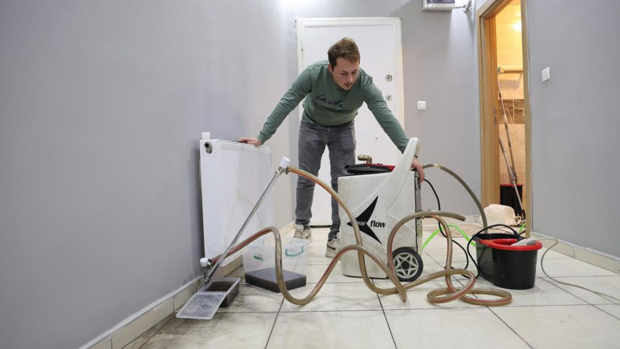 Temizlik yapılmadığı takdirde yaşanan sorunlara değinen Yılmaz, "Gittiğimiz bazı yerlerde, petekler ısınmıyor, ısınmamaya başlıyor. Artık o peteklerin içerisinde bulunan pislik, peteklerin girişleri ve çıkışlarını tıkıyor. Petek tıkandığı için çalışmıyor. Tekrardan o peteği sökmek zorunda kalıyoruz. Biz şu anda petek temizliğini sadece duru suyla yapıyoruz. O ilaç dedikleri şey bir asitten ibaret. O asit hem peteklere hem de kombiye zarar verdiği için ilaçla önermiyoruz. Biz suyla yapıyoruz. Biz bu noktada şart olarak görüyoruz. İki senede bir yapılmasını öneriyoruz. Yapılırsa faydasını görürler. Yapmazlarsa da dediğimiz gibi bir tıkanma sorunu yaşanır. Daha hızlı ısınırlar, daha fazla fatura öderler. İşlem yaklaşık olarak 40 dakika sürüyor. Evlerde işlemi banyodan yapıyoruz. Banyodaki peteğe, basınçlı makinayı bağlıyoruz. Oradan tüm peteklere tek tek suyu veriyoruz. Tüm petekleri tek tek temizliyoruz. Ondan sonra aynı şekilde kombiyi, kombinin filtrelerini temizliyoruz. Yani herhangi bir el kirletme olayı, petek sökme olayı olmadan tüm petekleri tek tek, en verimli şekilde temizliyoruz. Kış sezonu olduğu için yoğunluk var" diye konuştu.