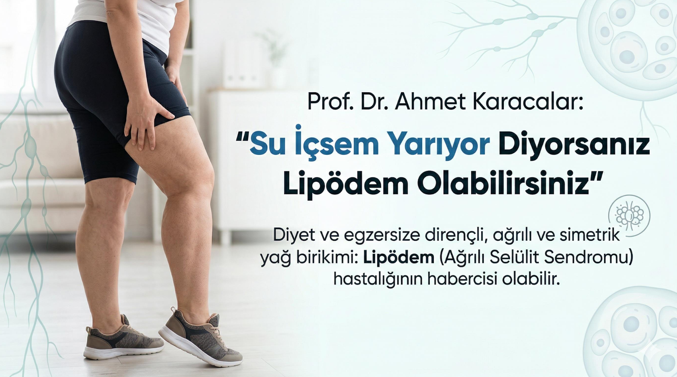 Klasik Kilo Verme Yöntemlerine Direnç GösteriyorHalk arasında sıkça kurulan "Su içsem yarıyor" cümlesinin altında lipödemin yatabileceğine dikkat çeken Prof. Dr. Ahmet Karacalar, hastalığı şu sözlerle tanımladı:"Lipödem, çoğunlukla kadınlarda görülen, simetrik ve ağrılı yağ dokusu birikimi ile karakterize; özellikle bacak, kalça, alt karın ve kollarda görülen kronik bir hastalıktır. Klinik olarak en dikkat çekici özelliklerinden biri, bu yağ dokusunun klasik kilo verme yöntemlerine, özellikle diyet ve egzersize direnç göstermesidir."