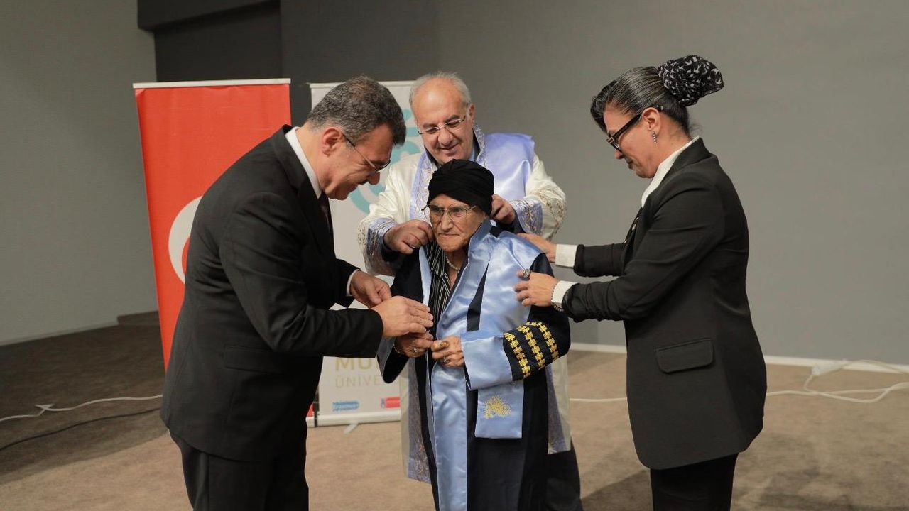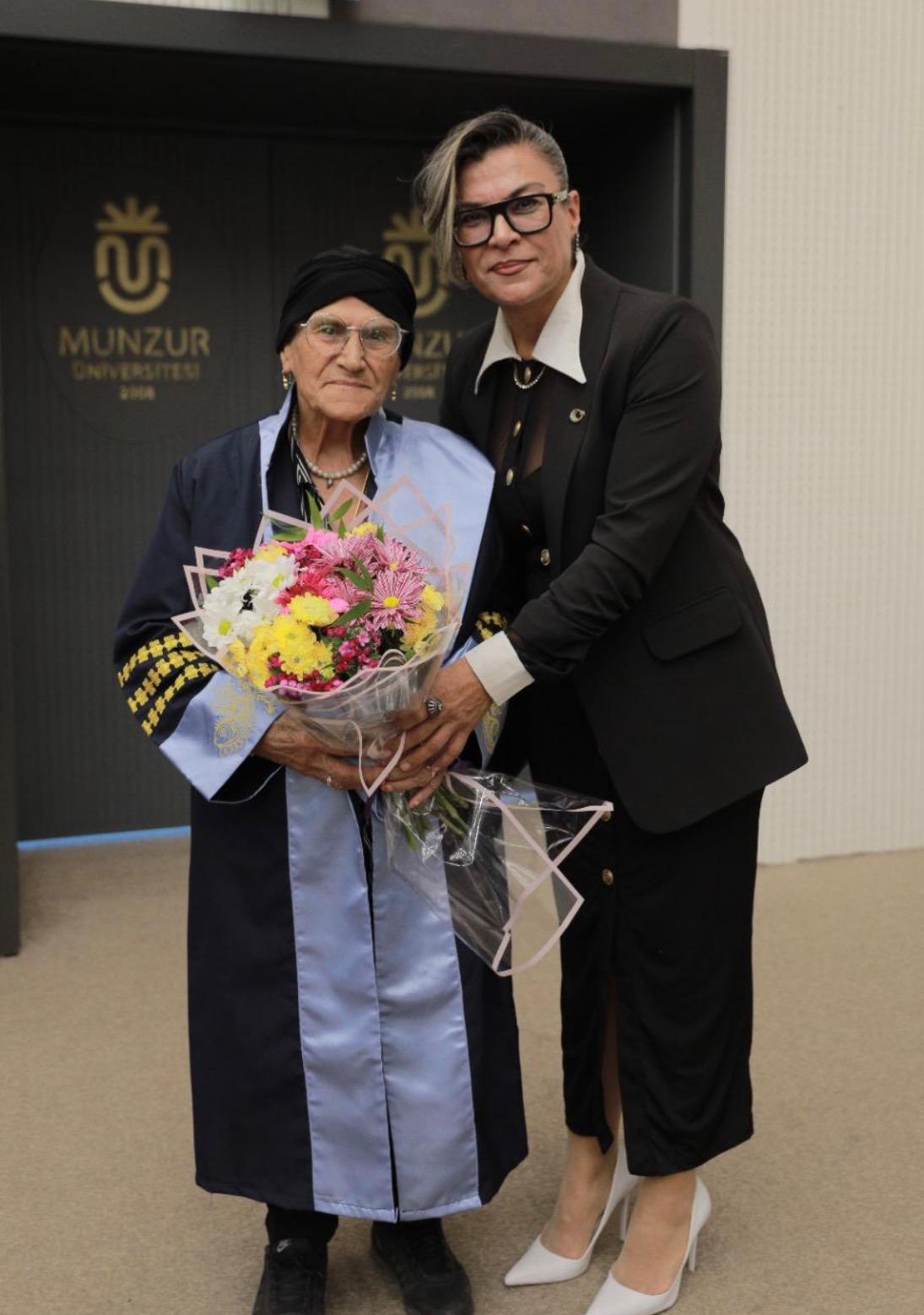Programın en önemli bölümlerinden biri ise unvan değişikliği alan akademisyenler için düzenlenen biniş giyme töreni oldu. Doçentlikten profesörlüğe yükselen Spor Bilimleri Fakültesi öğretim üyesi Prof. Dr. Süreyya Yonca Sezer, sahneye annesiyle birlikte çıkarak anlamlı bir an yaşattı. Sezer, akademik yaşamındaki bu önemli dönüm noktasında profesörlük cübbesini annesine giydirerek, başarısında en büyük paya sahip olan kişiye teşekkür etme imkânı buldu.
