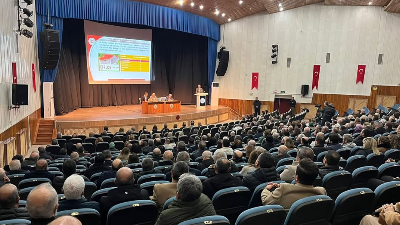 Fırat Üniversitesi Rektörü Prof. Dr. Fahrettin Göktaş, üniversitede görev yapan profesörlerin katılımıyla geniş kapsamlı bir değerlendirme toplantısı gerçekleştirdi. Atatürk Kültür Merkezi’nde düzenlenen toplantıda üniversitenin akademik faaliyetleri, bilimsel üretim kapasitesi ve gelecek döneme yönelik planlamalar ele alındı.