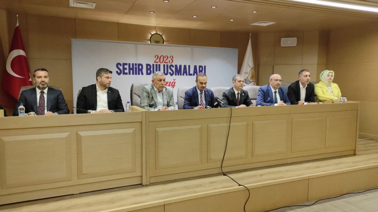 Toplantıda açıklamalarda bulunan Bakan Kacır, 2020 yılında Elazığ’da yaşanan depremde devletin vatandaşı yalnız bırakmadığının altını çizdi. Kacır, “Haftaya Elâzığ’da başlıyoruz nice medeniyete ev sahipliği yapmış Fırat’ın dicelnein ana yurdu Harput Kalesi gibi dimdik duran bereketli topraklarıyla Gakkoşların diyarı aziz şehir Elâzığ’da şehir buluşmaları kapsamında sizlerle olmaktan büyük bir memnuniyet duyuyorum. Göreve geldiğimiz günden bu yana Ankara dışındaki 11. Çalışma ziyaretimiz her zaman olduğu gibi bu ziyarette de vatandaşlarımıza bir araya geleceğiz çalmadık kapı bırakmamak için gayret göstereceğiz. Malumunuz AK Parti 22 yıllık hikayesi boyunca milletimizin sağ duyusuna yaslandı milletimiz de ak partiye olan güvenini hiçbir zaman boşa çıkarmadı AK Parti’nin ve Cumhurbaşkanımız Sayın Recep Tayyip Erdoğan’ın arkasında dimdik durduk. Ben 22 yıllık hikayemiz boyunca bu davaya gönül vermiş, alın ve akıl teriyle emek vermiş yol ve dava arkadaşlarımıza şükranlarımı sunuyorum.