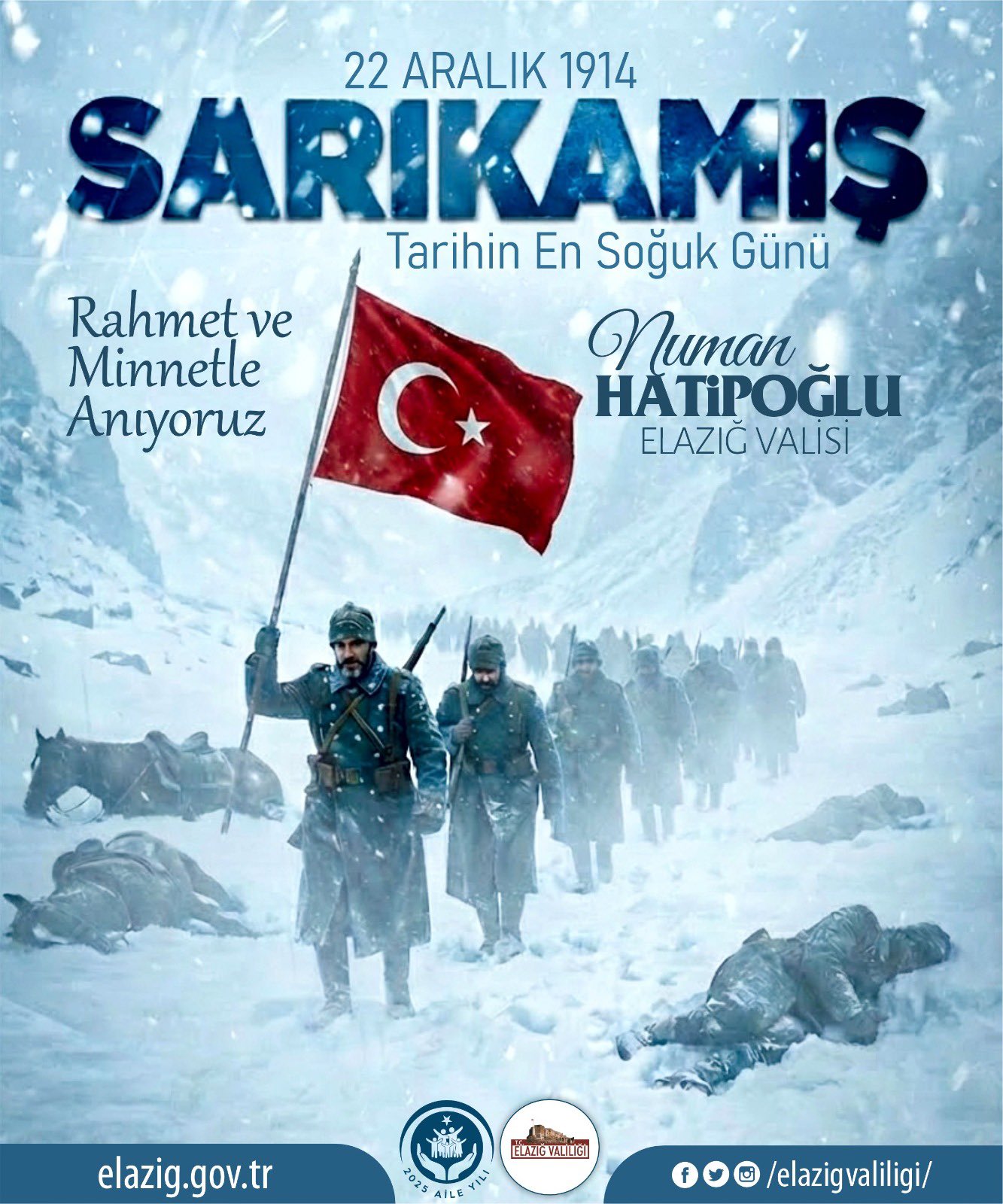 Vali Hatipoğlu, mesajının sonunda Sarıkamış Harekâtı’nda şehit olan askerler başta olmak üzere tüm şehitleri rahmet ve minnetle andı; kahramanların hatıralarının daima saygıyla yaşatılacağını ifade etti.