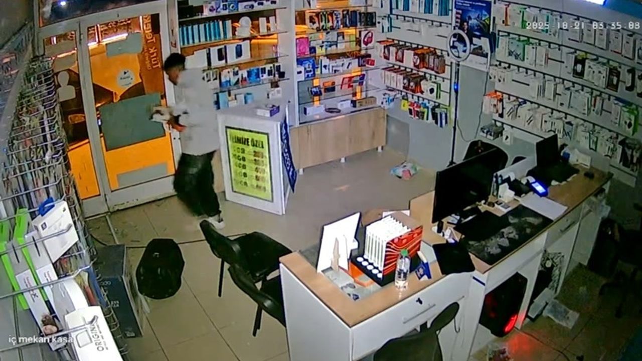 Olay, Üniversitesi Mahallesi Yahya Kemal Caddesi’nde meydana geldi. Edinilen bilgiye göre, kimliği belirsiz bir şahıs, bir telefoncu dükkanının camını kırarak içeri girdi. İçeri girdikten sonra başındaki kapüşonunu çıkartan ve kameralara aldırış etmeyen pişkin hırsızın rahatlığı dikkat çekti. Uzun süre dükkanda kalan hırsız adeta seçerek malzeme çaldı. Hırsız; 5 adet sıfır telefon, 1 adet tablet, 4 adet akıllı saat, 3 adet kablosuz kulaklık, çeşitli markalarda şarj cihazları ve yaklaşık 60 bin TL’yi çalarak kayıplara karıştı.