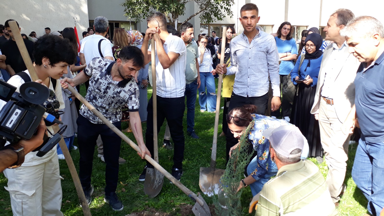 Tıp Fakültesine bu dönem yeni başlayan birinci sınıf öğrencileri, onlarca fidanı toprakla buluştururken, 6 Şubat Kahramanmaraş depreminde hayatını kaybeden Fırat Üniversitesi Tıp Fakültesi öğrencisi Berna Nur KALINKÜTÜK’ü unutmayarak anısına fidan diktiler.