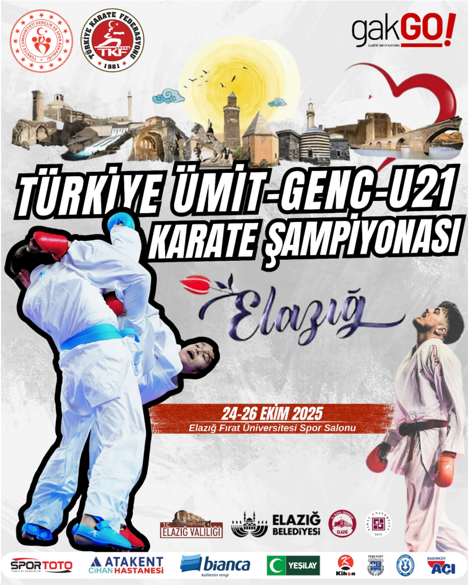 Türkiye Karate Federasyonu’nun 2025 yılı faaliyet programında yer alan Ümit, Genç ve U21 Türkiye Karate Şampiyonası, bu yıl Elazığ’da düzenleniyor. Şampiyona, 24-26 Ekim 2025 tarihleri arasında Fırat Üniversitesi Spor Salonu’nda gerçekleştirilecek.