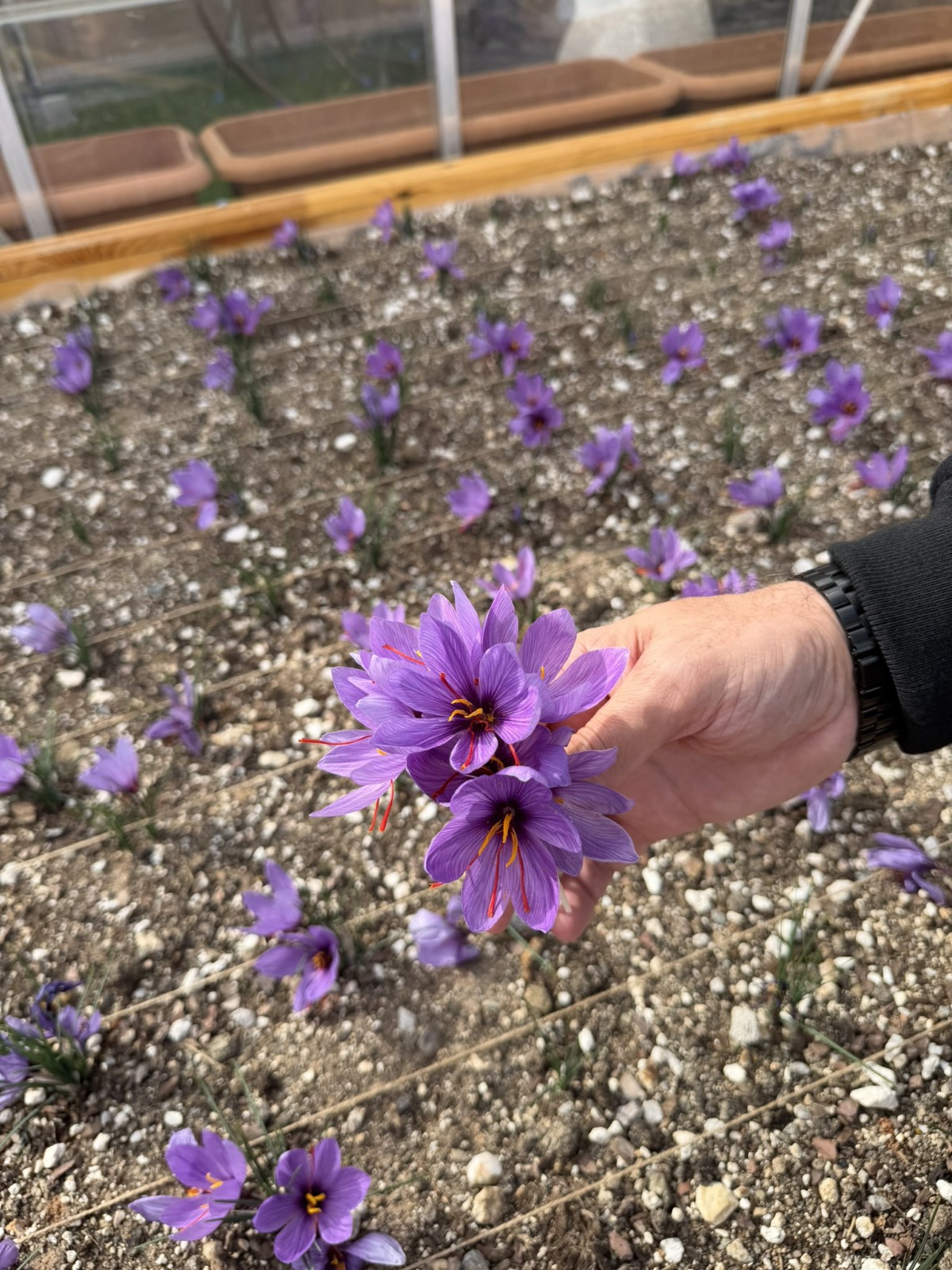 “Rengiyle bereketi, kokusuyla huzuru, şifasıyla sağlığı temsil eden bu nadide bitkiyi; zahmetli üretim sürecine rağmen özel formüllerle hazırladığımız doğal gübreleme yöntemleri sayesinde başarıyla yetiştirdik ve bugün emeğimizin karşılığını alarak safranı hasat ettik.”