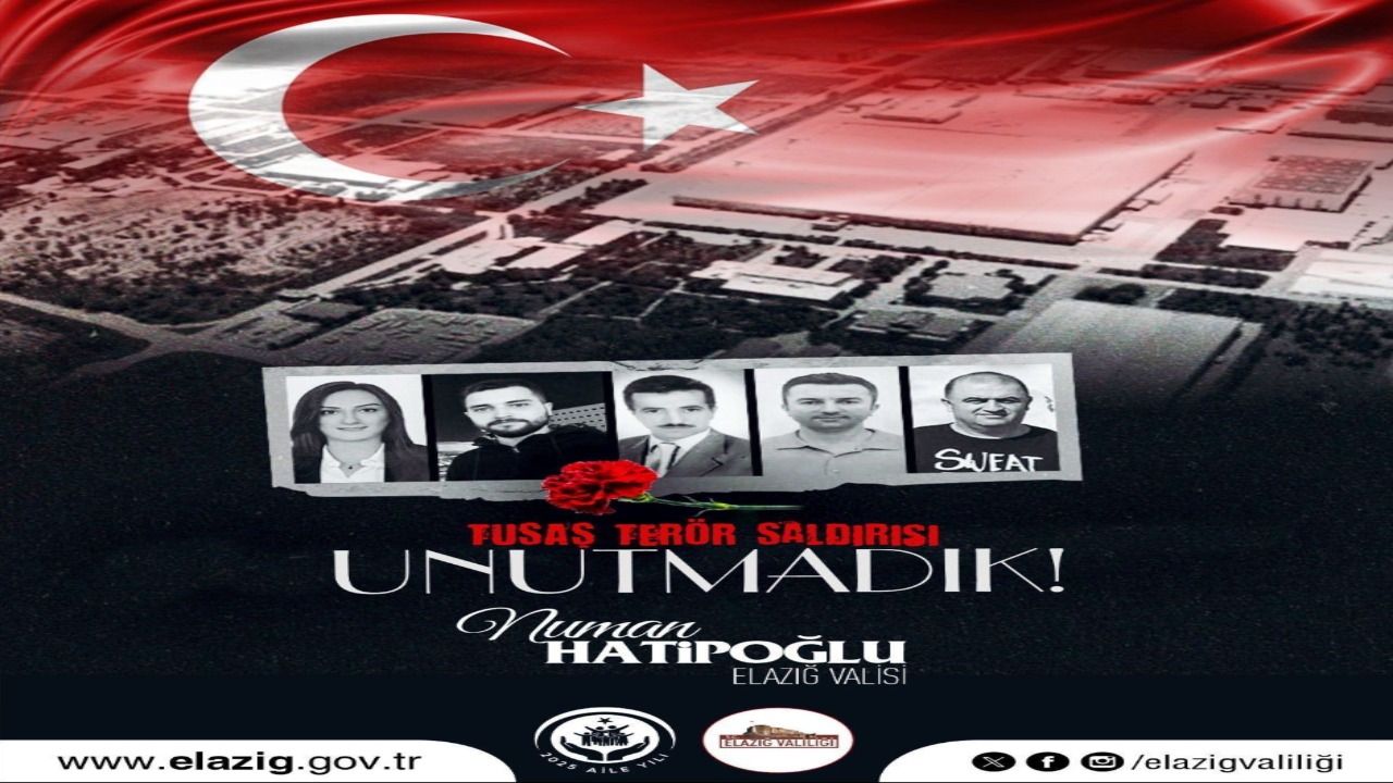 Elazığ Valisi Numan Hatipoğlu, Türk Havacılık ve Uzay Sanayii (TUSAŞ) tesislerine gerçekleştirilen hain terör saldırısının yıldönümünde yayımladığı mesaj ile şehitleri rahmet ve minnetle andı. Mesajında, saldırının Türk milletinin birlik ve beraberliğine yönelik karanlık bir girişim olduğunu belirten Hatipoğlu, terörün hiçbir zaman milletin sarsılmaz iradesini kıramayacağını vurguladı.