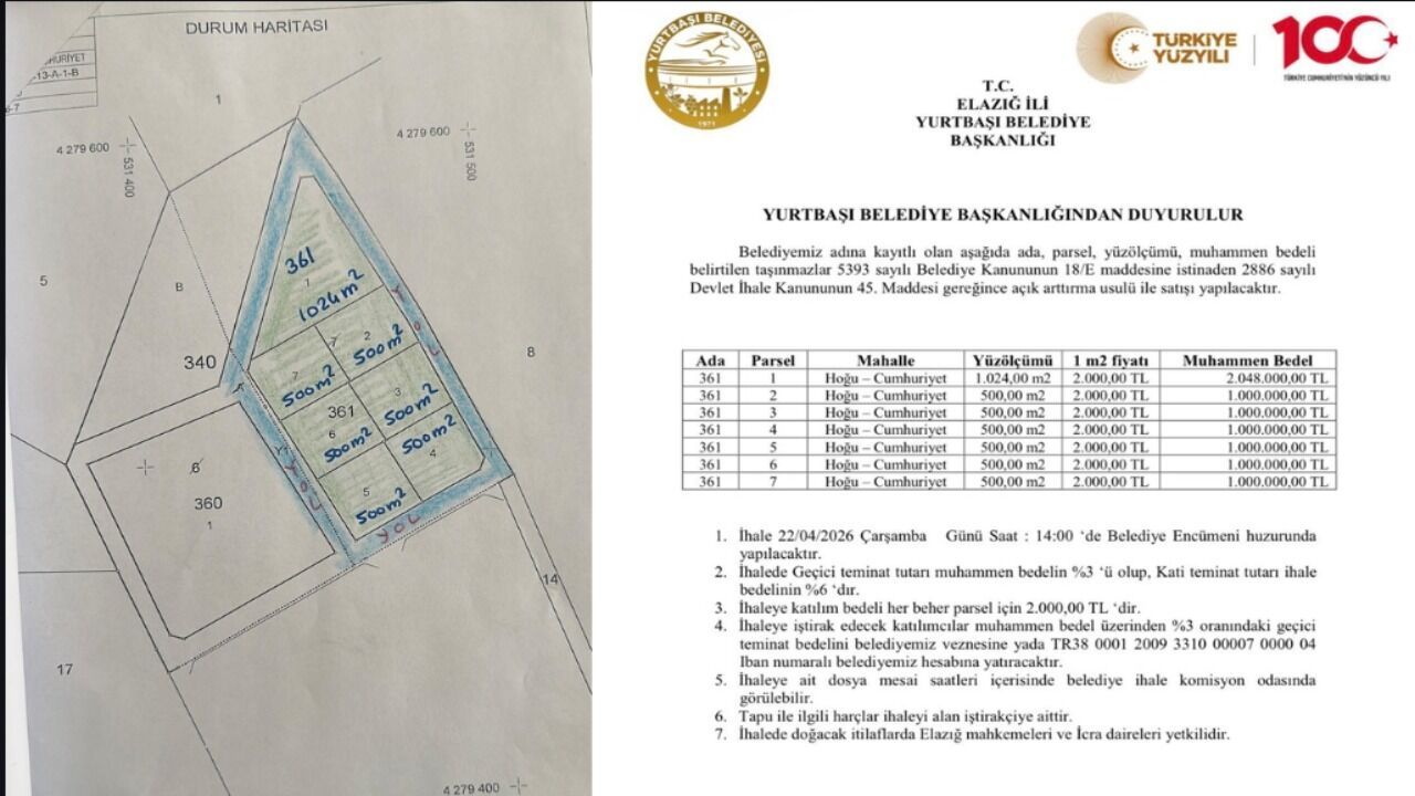 Belediye tarafından yapılan bilgilendirmede, ihale sürecinin mevzuata uygun şekilde yürütüleceği ve tüm işlemlerin denetime açık olacağı belirtildi. Ayrıca satışa çıkarılan taşınmazlara ilişkin detaylı bilgilere ve ihale şartnamesine Yurtbaşı Belediyesi’nden ulaşılabileceği kaydedildi.